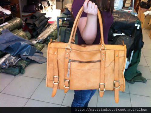 五金換成方形的铆釘,形成一個男女都很適合的中性款包包~