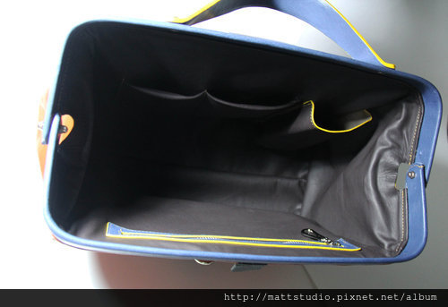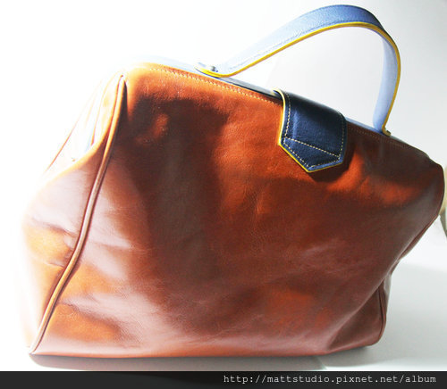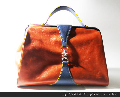 學生變化版醫生包,運用咖啡色質牛皮配藍色與飽和黃適當的展現出一種現代與古典的結合。 大家也可以試試看運用不同的顏色來搭配出不同的效果!