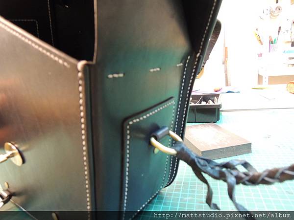 上面手工編製的皮繩是客人特別要求的。